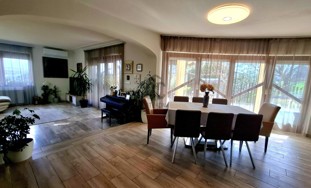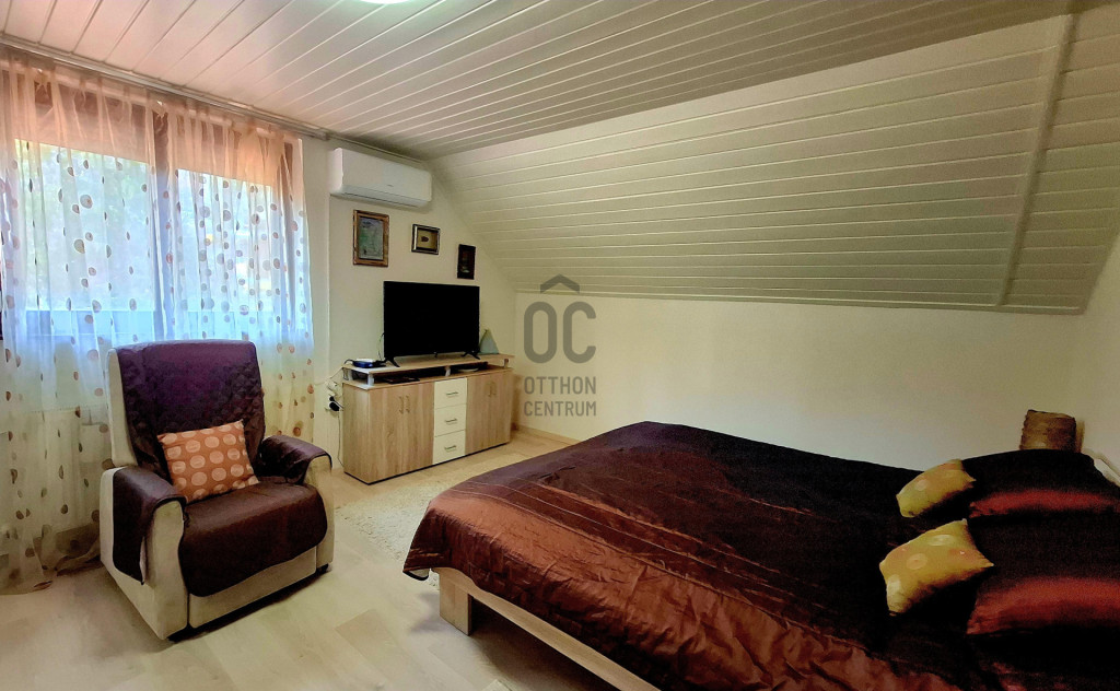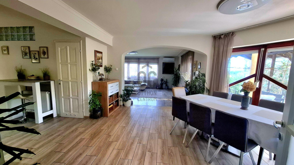 A 25 évvel ezelőtt, tégla falazattal épült, TONDACH cseréppel fedett, gázcirkó fűtésű, 5 klímával szerelt, 8 szobás, világos, nap sütötte,