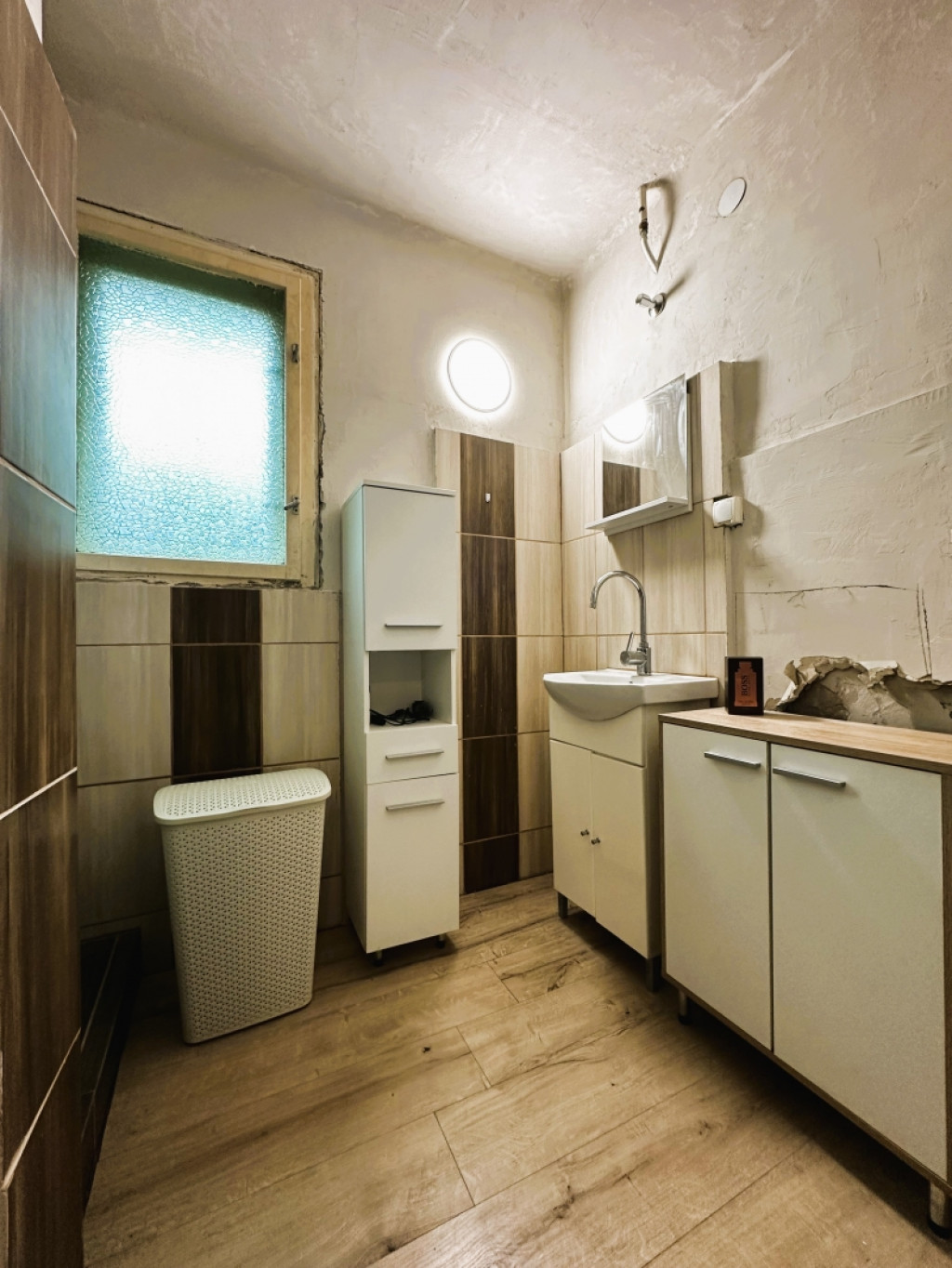 Az első emelet felújítandó állapotú. Itt 3 külön nyíló, tágas hálószoba, (Az utcára nézőből egy erkélyre is kiléphetünk.) közlekedő, fürdőszoba, WC, étkező, főzőfülke, és spájz is lett kialakítva.