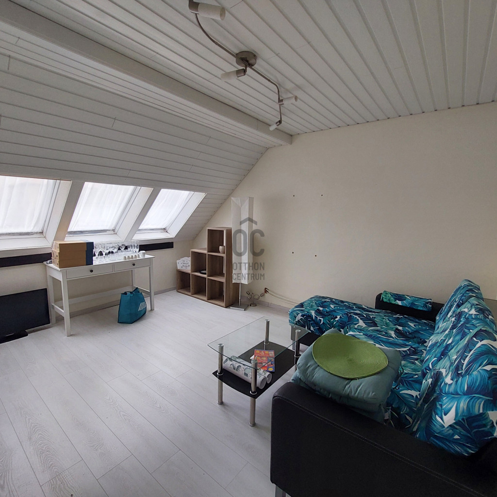 Tetőtér 57nm: lépcsőházi előtér, előszoba, nappali + 3 félszoba, konyha-étkező, fürdőszoba, Wc.