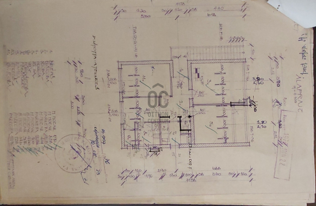 A 720nm-es, sík telken lévő ház 1975-ben épült. A földszinten a lakáson kívűl garázs és tároló található,