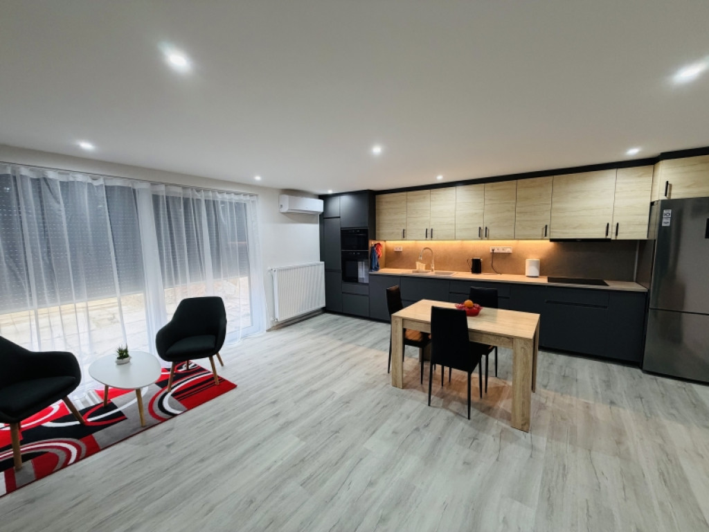 A konyha teljesen új, modern, beépített gépesített készülékekkel felszerelt, melyek GARANCIÁLISAK!