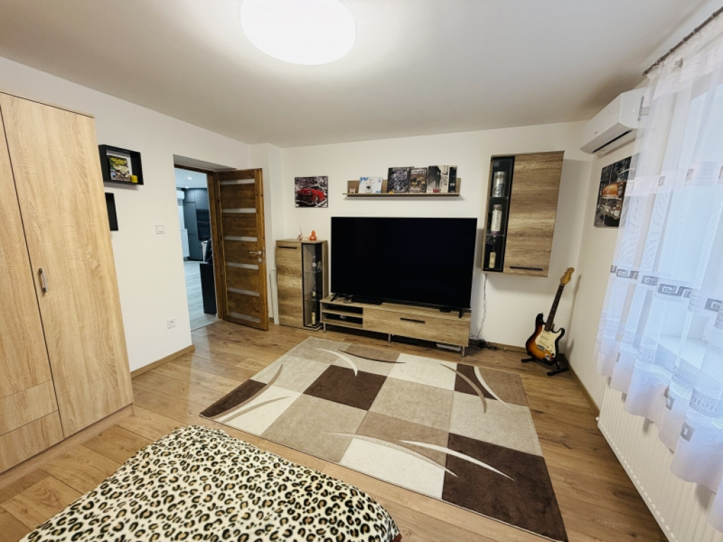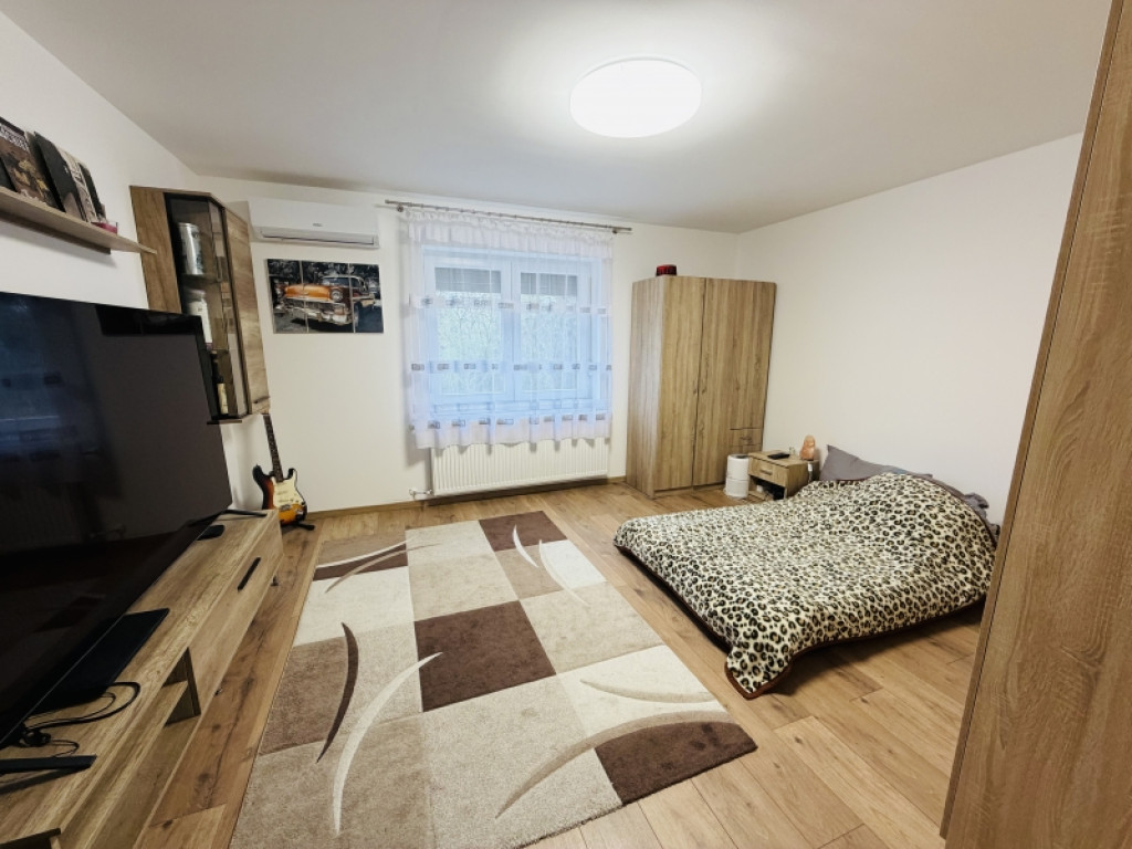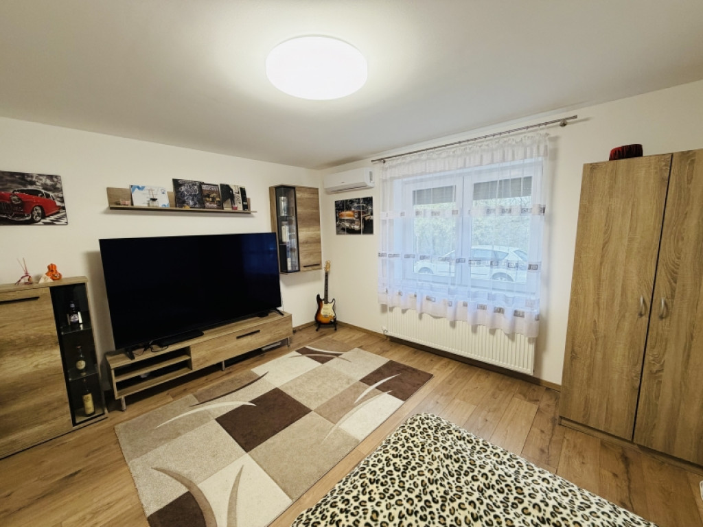 A ház elosztása kiváló. Az előszobából megközelíthető egy fürdő WC-el, egy külön vendég WC, tágas világos amerikai-konyhás nappali, kettő külön nyíló tágas szoba, illetve egy mosókonyha ahol megtalálható egy vadonatÚJ kondenzációs gázkazán!