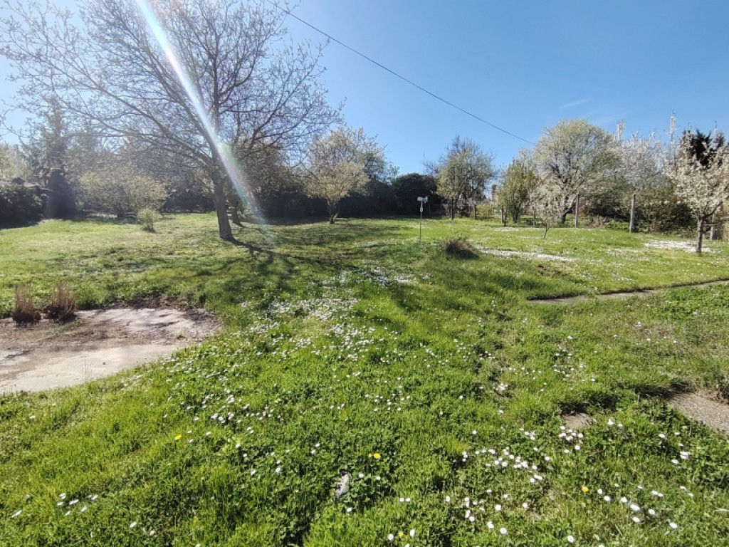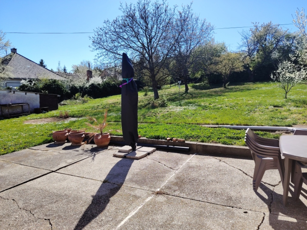 A telken ezen felül van egy garázs és terasz is és így marad egy nagy zöldellő, jól elkerített,