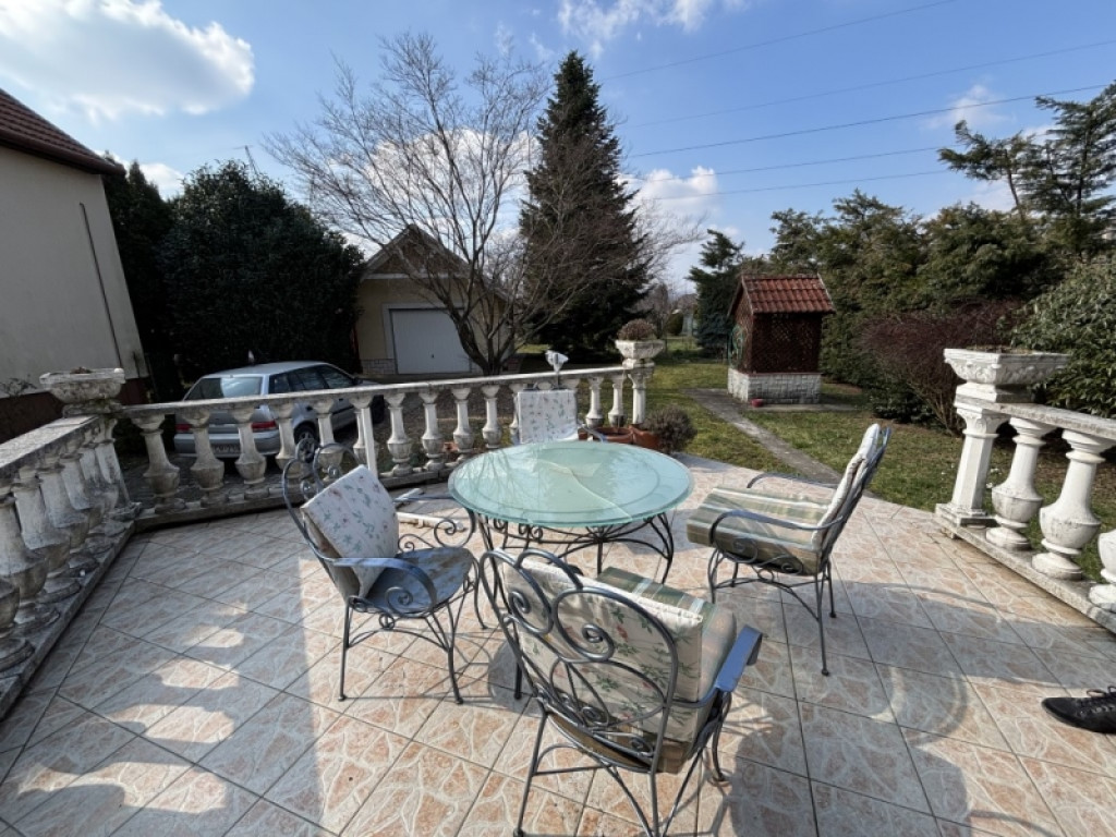 Különleges hangulatú, parkosított kert 130 éves cseresznyefával, több termő gyümölcsfával (alma, dió, körte, füge, meggy), japán juharral és fenyőkkel. A telken jó vízhozamú kút és egy fából készült filagória is található.