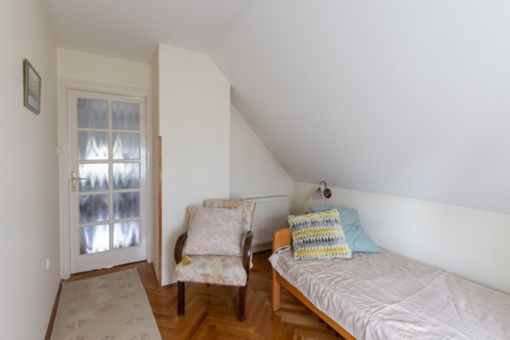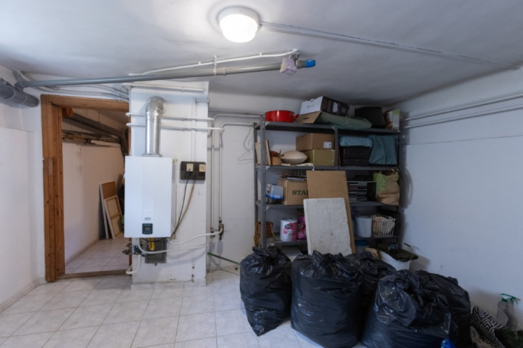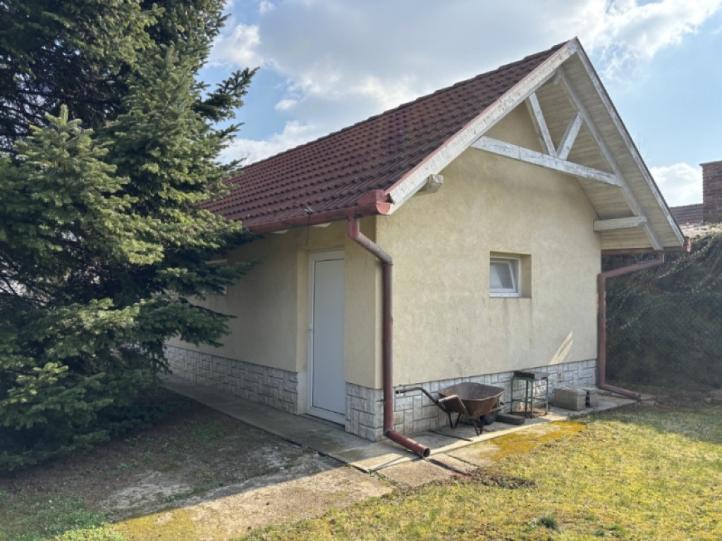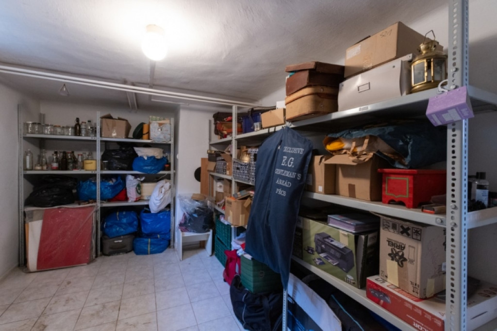 30 m²-es, két helyiségből álló szuterén külön kertkapcsolatos bejárattal, amely tárolónak, műhelynek vagy hobbihelyiségnek is alkalmas.