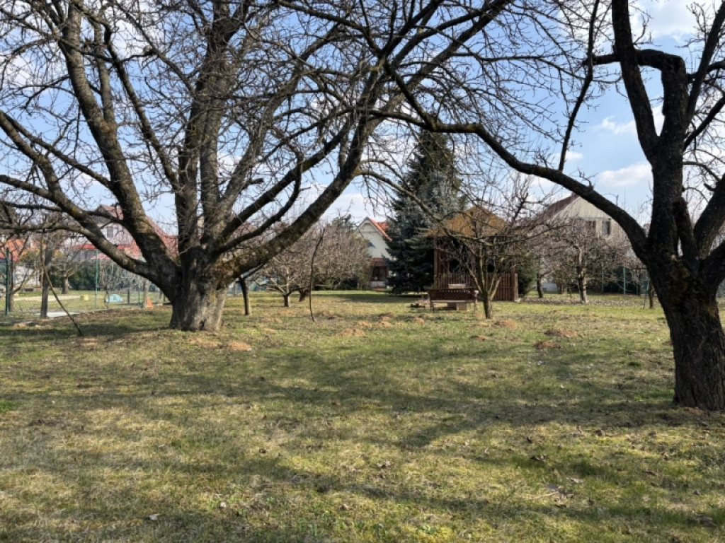 Különleges hangulatú, parkosított kert 130 éves cseresznyefával, több termő gyümölcsfával (alma, dió, körte, füge, meggy), japán juharral és fenyőkkel. A telken jó vízhozamú kút és egy fából készült filagória is található.