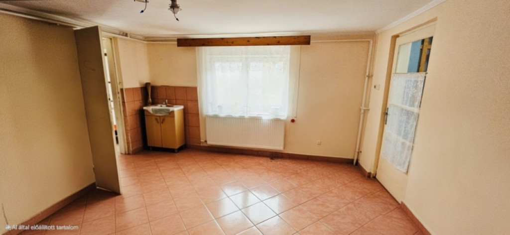 Alsó szintjén előszoba, 1 szoba, konyha-étkező, fürdőszoba, és WC található.