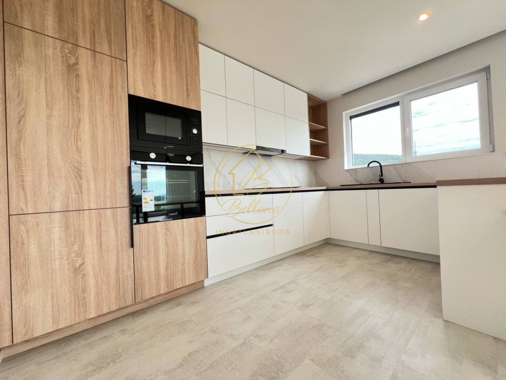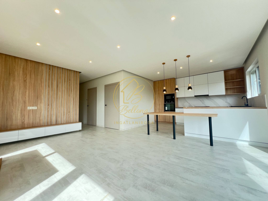 Modern, kiválóan térszervezett lakóteret kínál: tágas nappali–étkező–konyha beépített konyhabútorral, három külön nyíló, beépített szekrényes szoba, elegáns fürdőszoba, vendég WC és háztartási helyiség.