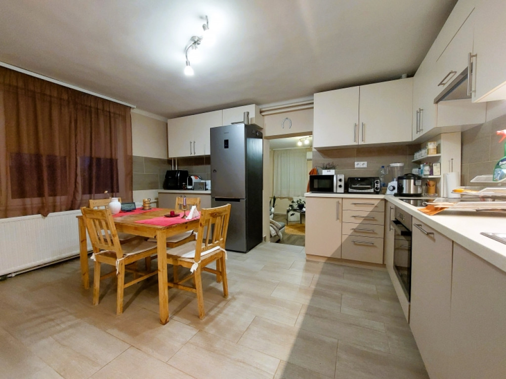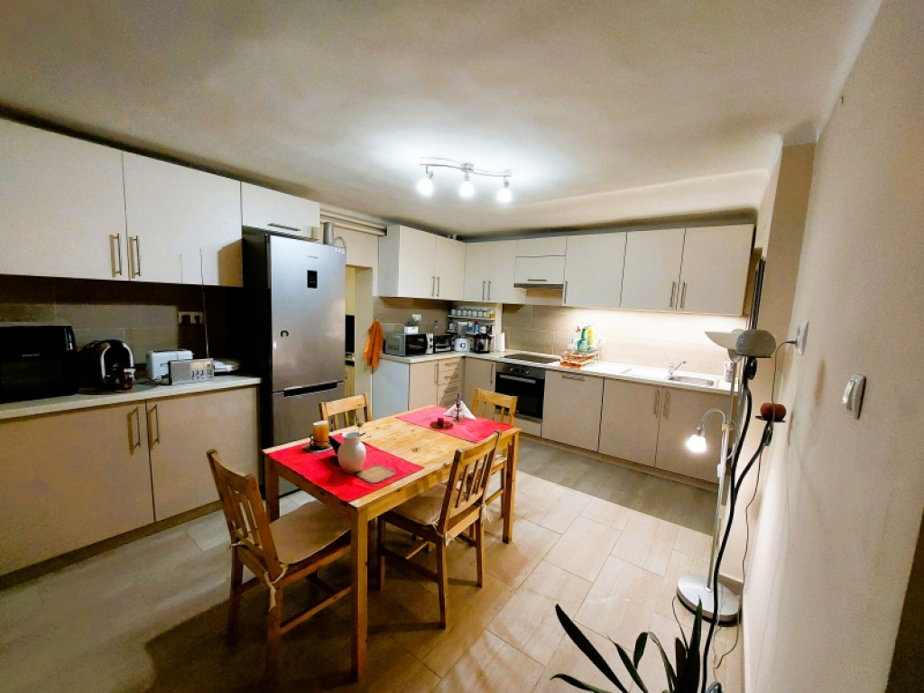 A modern otthon része egy egyedileg tervezett, beépített, teljesen gépesített konyhabútor, amely főzőlappal, sütővel és mosogatógéppel felszerelt, így azonnal használatra kész.