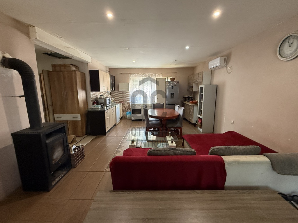 Fűtése klímával és fa tüzelésű kandallóval megoldott.
