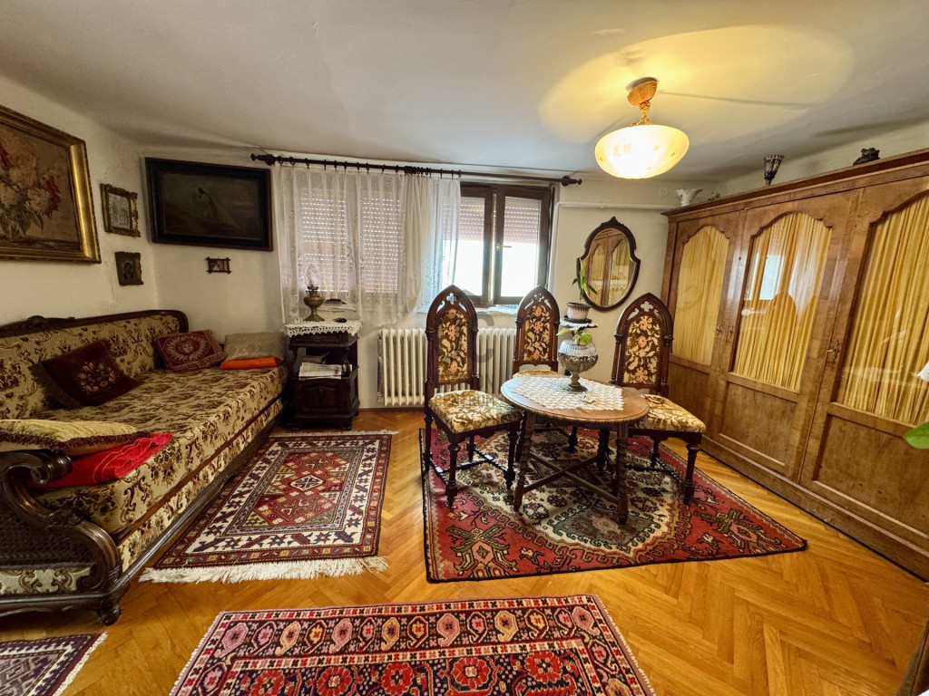 A ház részben tagolt, mivel eredetileg 2 szoba+fürdő+konyha / étkezőből állt, amihez a 90-es évek végén a kertből megközelíthető plusz vendégszobát építettek hozzá.
