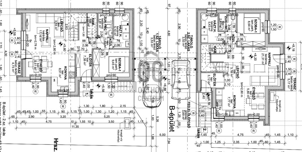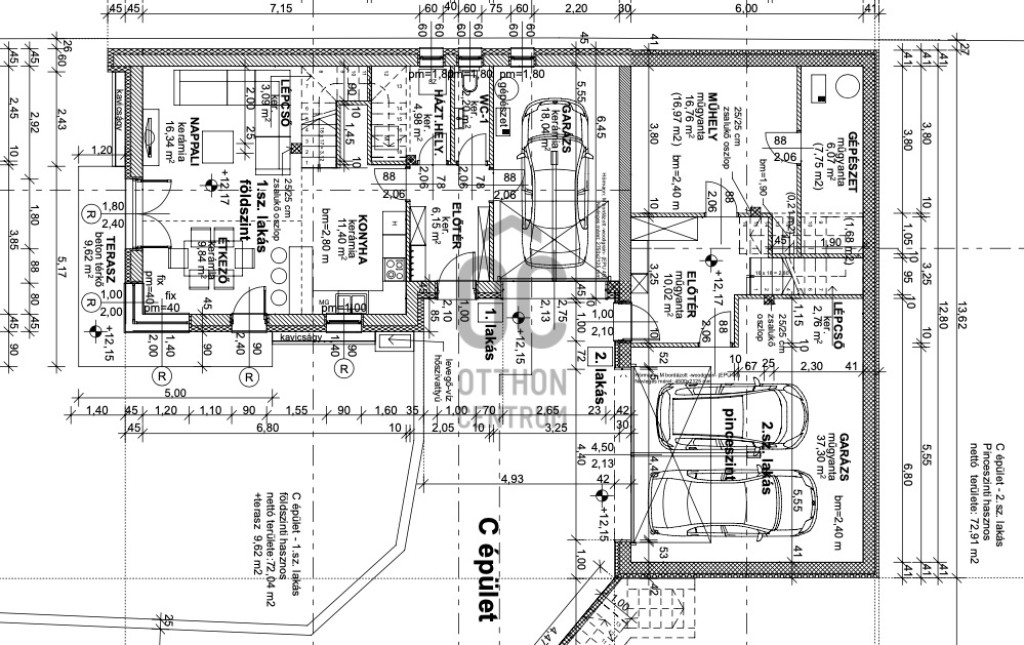 Különlegesség: a C épület egyik lakása háromszintes, kétállásos garázzsal és extra tárolási lehetőséggel