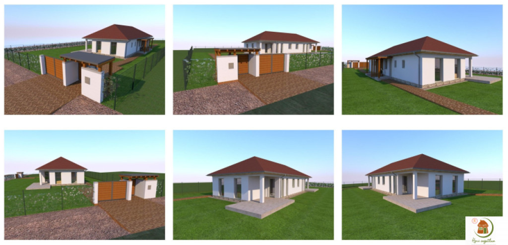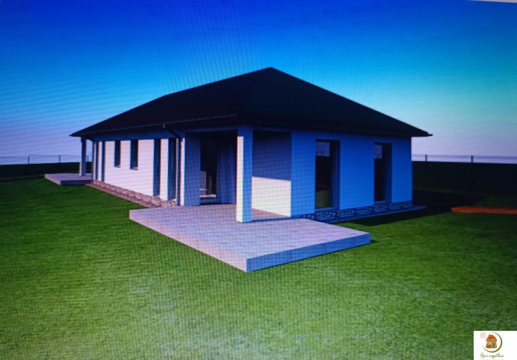 Beosztás: Nappali (20m²), 4 szoba, konyha, fürdőszoba, WC, tároló, előtér, szélfogó, fedett terasz