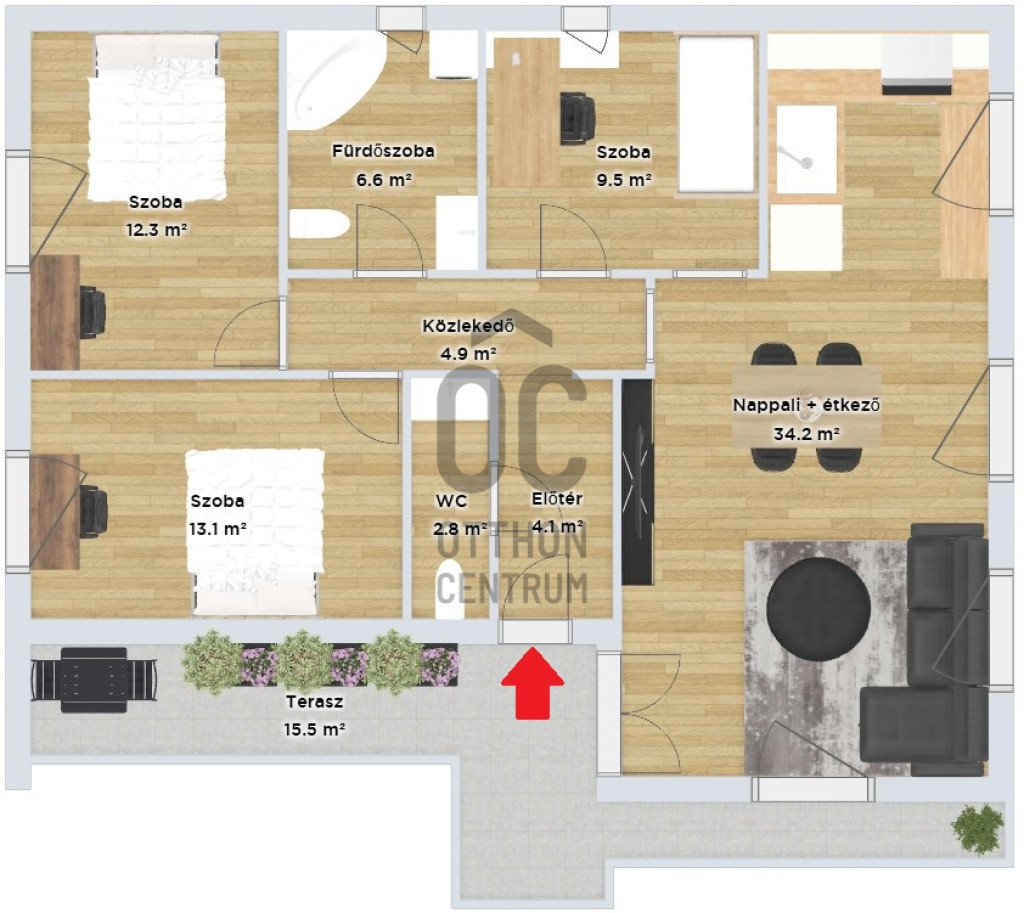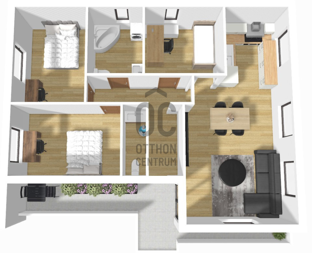 20 m2-ess terasz egészíti ki.