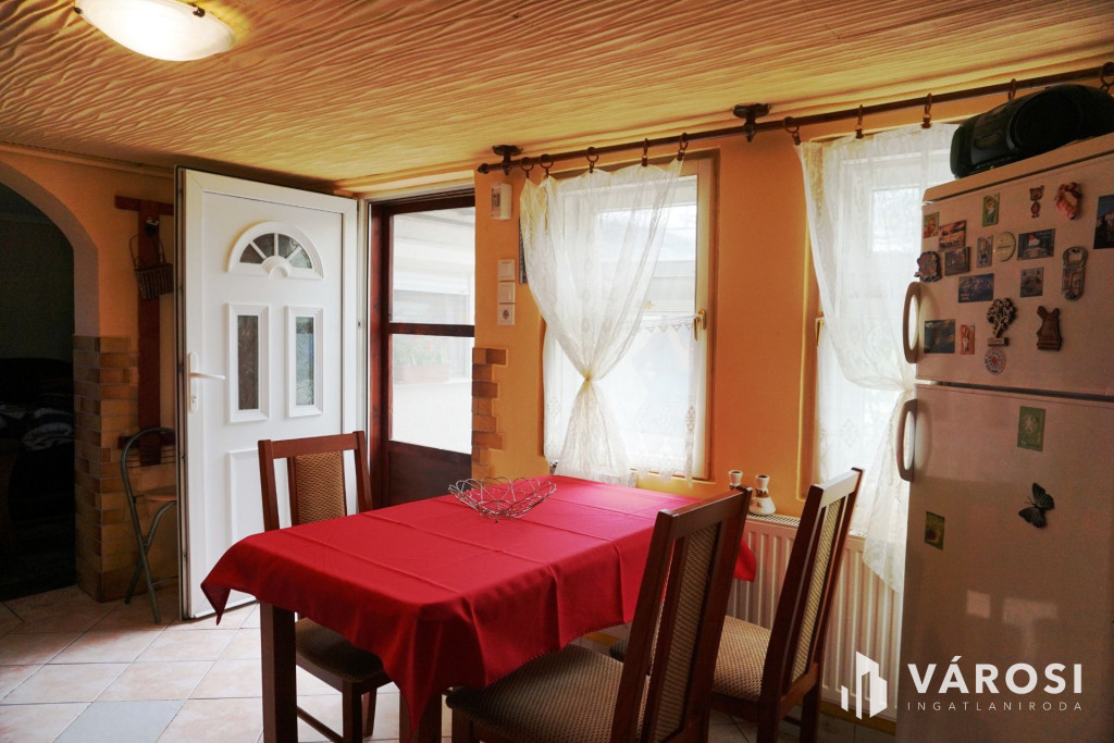 Pusztamérgesen kínálom eladásra vagy szegedi 2 szobás panellakás cseréjére ezt a felújított, takaros kis családi házat. A korszerűsítés keretein belül a nyílászárókat műanyagra cserélték, a fűtést cirkófűtésre alakították át, a villanyvezetéket újra húzták.A konyhát és a közlekedő részt boltívek kialakításával tették tágasabbá, jelenleg itt van kialakítva a nappali is. Ezen helyiségeket laminált lappal burkolták.