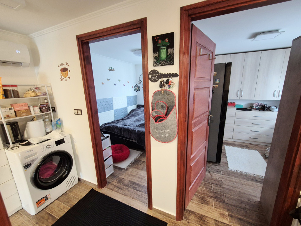 Elosztás: kényelmes DK-i tájolású 14,02m2 nappali-étkező, tágas előszoba (2,71m2), 2 hálószoba (6,63m2, 6m2) , egy jó méretű ablakkal rendelkező építet zuhanyzós fürdőszoba (4,10m2), kompakt konyha tér (4,92m2).