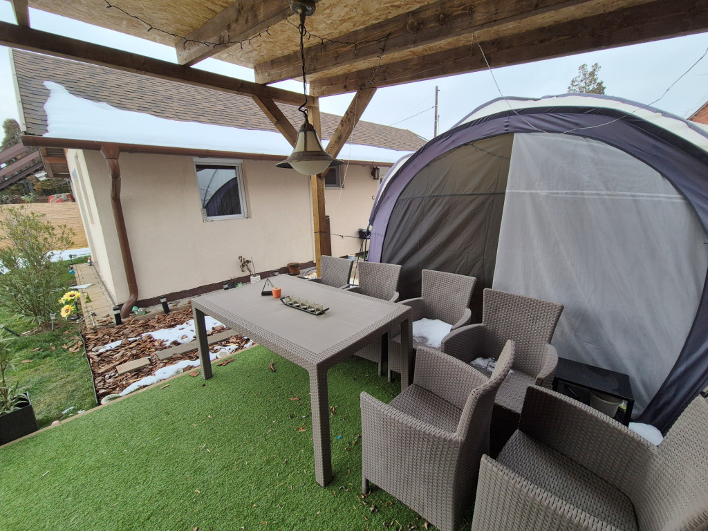 -FEDETT 12m2-es BULI TERASZ a ház mellett a baráti összejövetelek