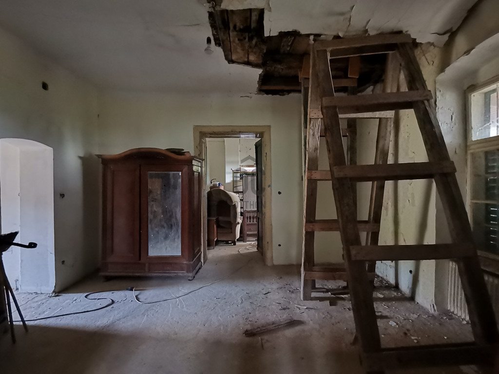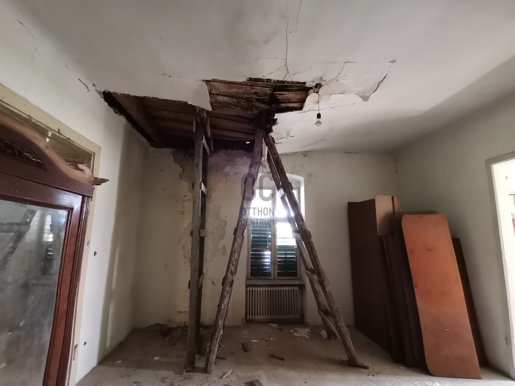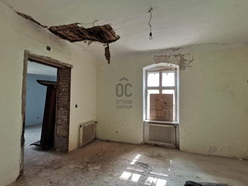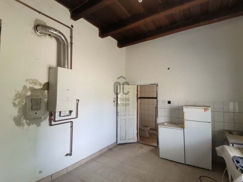 Hatalmas, 300-320-as belmagasság, ívek, vastag falak, látszógerendás és álmennyezetek, eredeti kövezés és óriási szobák sora vár. A teljes nettó terület 160 nm, ahol 5 lakószobát, konyhát, fürdőszobát és egy 30 nm-es teraszt találunk. Az álmennyezet felett stukatúros fedés van, amely sok helyen megadta magát. A tetőzet az eredeti cseréppel fedett. A teraszra két szobán keresztül is van kijárat, innen fantasztikus a Balaton látványa!