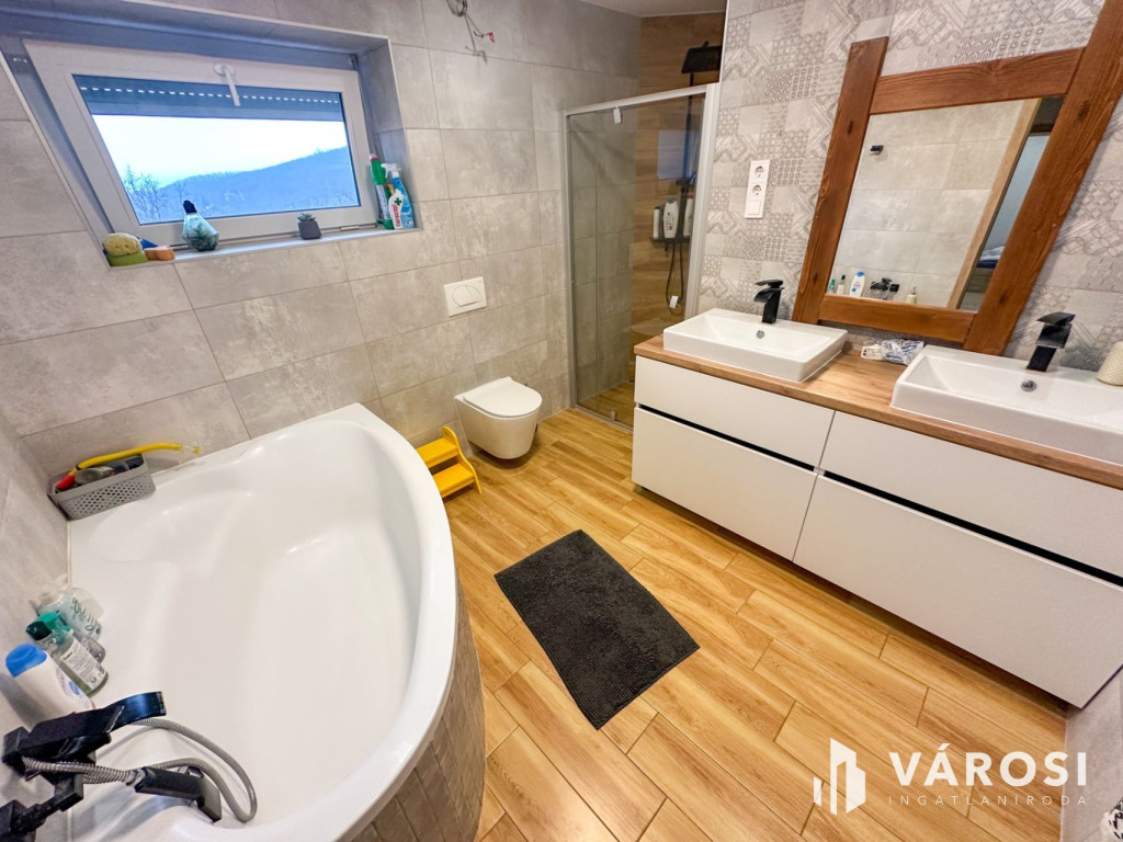 - Fürdőszoba: modern kialakítású, teljesen felszerelt, sarokkáddal és zuhanyzóval (Ravak).