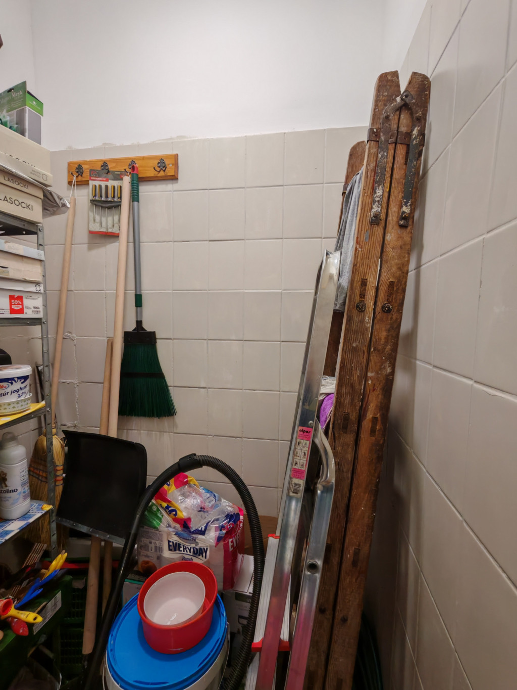 A meleg víz ellátást villanybojler biztosítja, a fűtésről gázkonvektor gondoskodik.