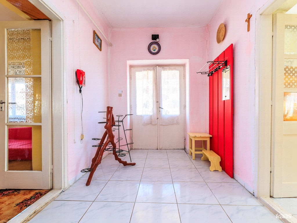 | Alapterület (m²): 100 m² alapterületű | Szobák száma: 3 szobás | Telek mérete (m²): 899 m² telekméret | Épületek száma: 2 épületből áll | Ingatlan hány szintes: 1 szintes ingatlan | Belmagasság (cm): 2.76 cm belmagasságú | Alapozás: sávos beton alap | Falazat: vályog falazatú | Tető formája: sátortetős | Tető szerkezete: a tető faszerkezetes | Ereszcsatorna: alumínium ereszek | Ablakok: fa ablakok | Ajtók: fenyő bejárati ajtók, fenyő belső ajtók | Árnyékolástechnika: műanyag redőny | Kapu, garázsajtó: két szárnyas kapu | Kerítés: drótkerítés | Padlóburkolatok: hajópadlós | Ingatlan állapota: felújításra szorul | Küllem, stílus: átlagos | Szobák és helységek: hálószobával, közlekedővel, több hálószobával | Fürdőszoba, WC: egy fürdőszobás, wc a fürdőszobában, fürdőkádas | Konyha, ebédlő: külön konyha, ebédlő, spájz, éléskamra | Terasz, kert, udvar: saját udvar | Komfort: összkomfortos | Ingatlan felszereltség : nincs felszerelés | Közműszolgáltatások: közvilágítás van, lakossági gáz bekötve, lakossági víz bekötve, lakossági áram bekötve, csatorna bekötve | Fűtés, hőtermelők: gázkonvektor | Parkolás: parkoló udvar | Megközelíthetőség: végig aszfalton elérhető, forgalmas út melletti | Van a közelben: ABC közelben, játszótér közelben, Iskola közelben, óvoda közelben, bölcsőde közelben, háziorvosi rendelő | Tömegközlekedés: buszmegálló közelben | Kilátás: udvarra néző, utcára néző, kertre néző | Lokáció: frekventált környezetben | Birtokbavétel időpontja: azonnal beköltözhető | Állatbarát hozzáállás: állatbarát lakóközösség |