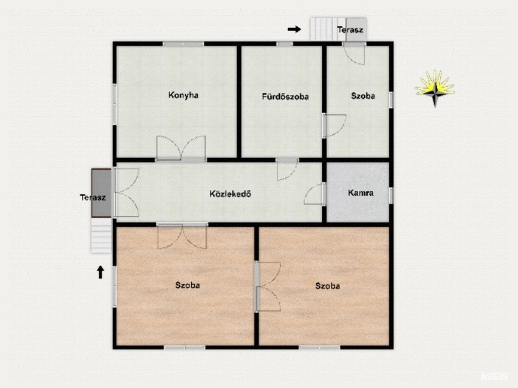 • helyiségek: előszoba, konyha/étkező, 3+1 szoba, fürdő/wc, kamra, nyárikonyha
