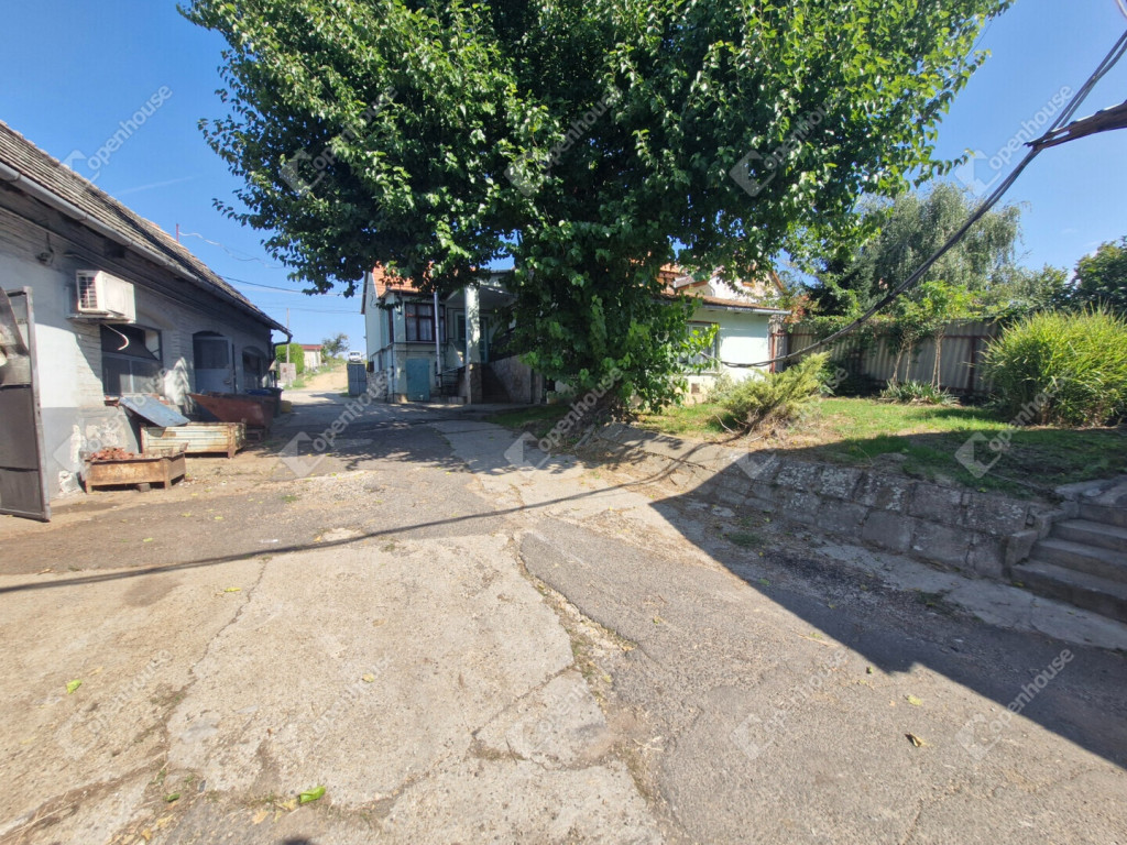 A telek utcafronti részén egy 80 m²-es, jó szerkezeti állapotú, nappali + két szobás családi ház várja új lakóit.