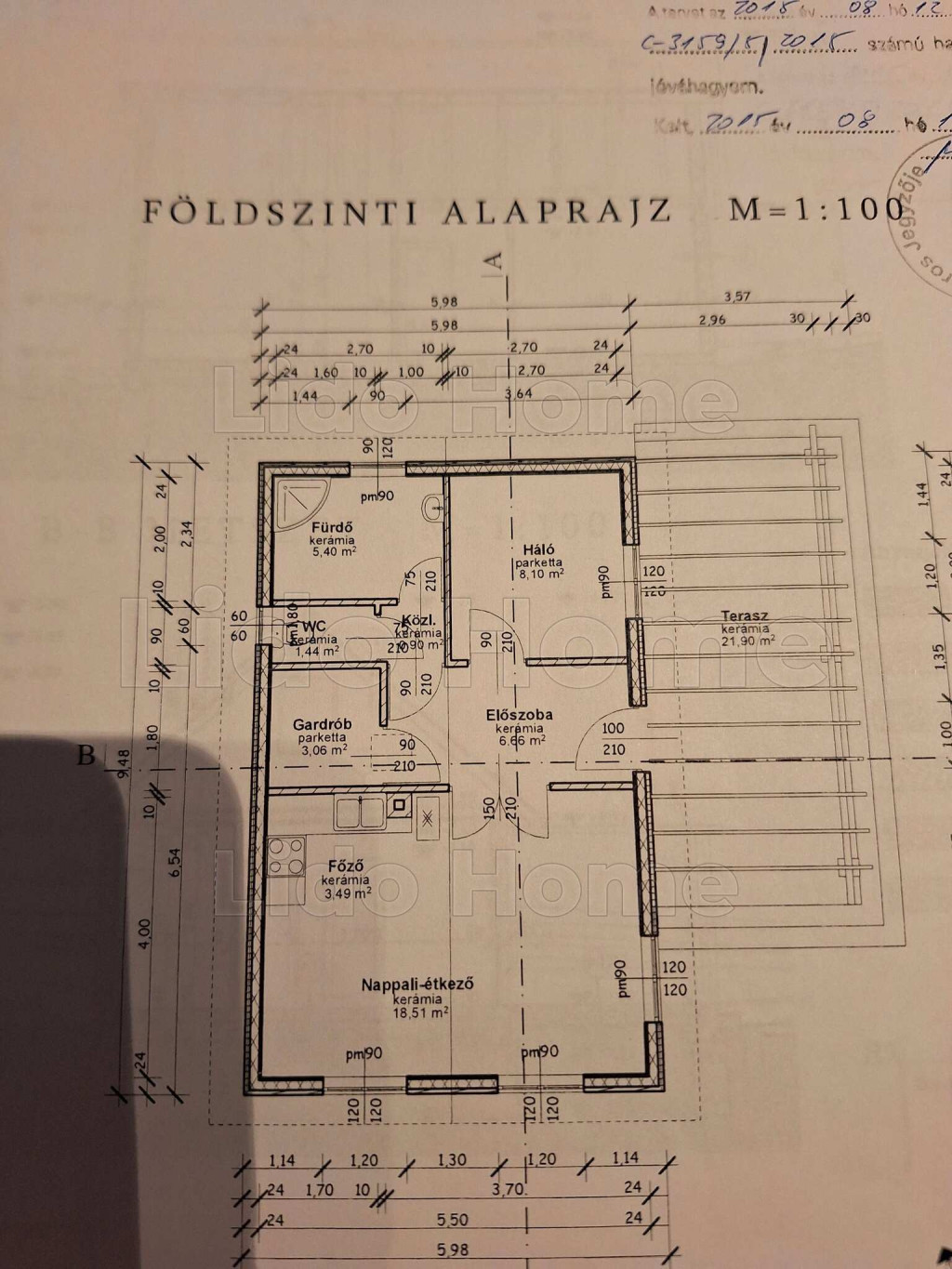 -Elrendezése: folyosó, szoba, fürdő, WC, gardrób szoba, közlekedő, konyha, amerikai konyhás nappali, fedett terasz,