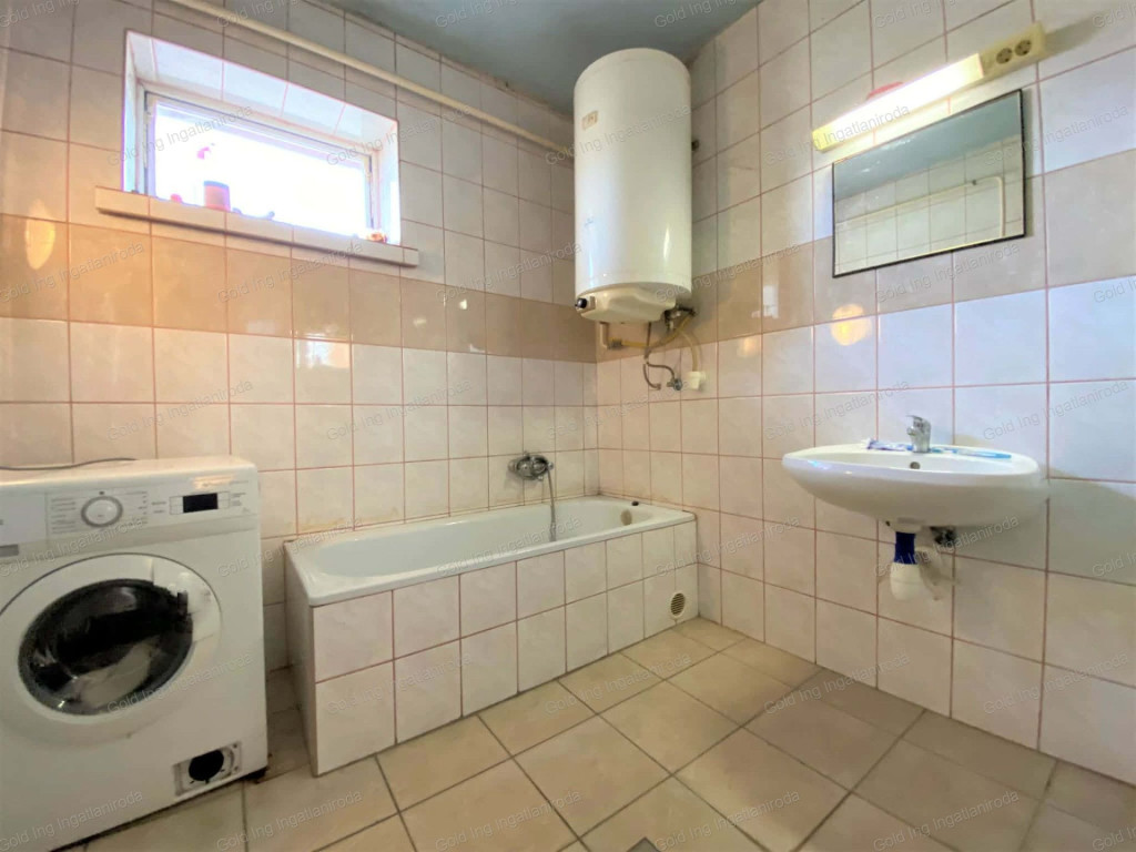 A három szoba (24, 22, 18 nm) meleg, hajópadló burkolatot kapott. A fürdőszoba pedig semleges színű világos csempét, és ezzel harmonizáló járólapot. Nagyon kényelmes megoldás, hogy zuhanyzó és kád is van benne. Ezen felül egy WC, mosdó és természetesen a mosó-, és szárítógépnek is bőven jut hely.