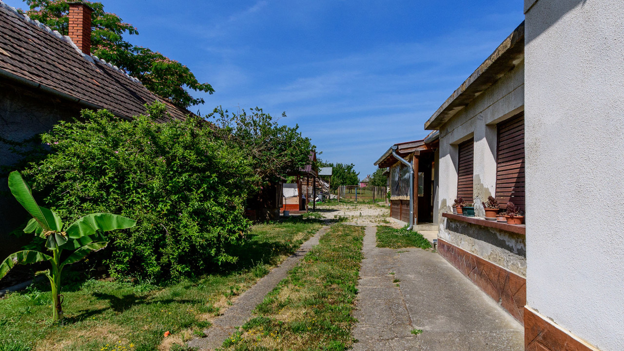 A házhoz tartozik egy fedett terasz és kerti kiülő, amely kellemes helyszíne lehet a pihenésnek.