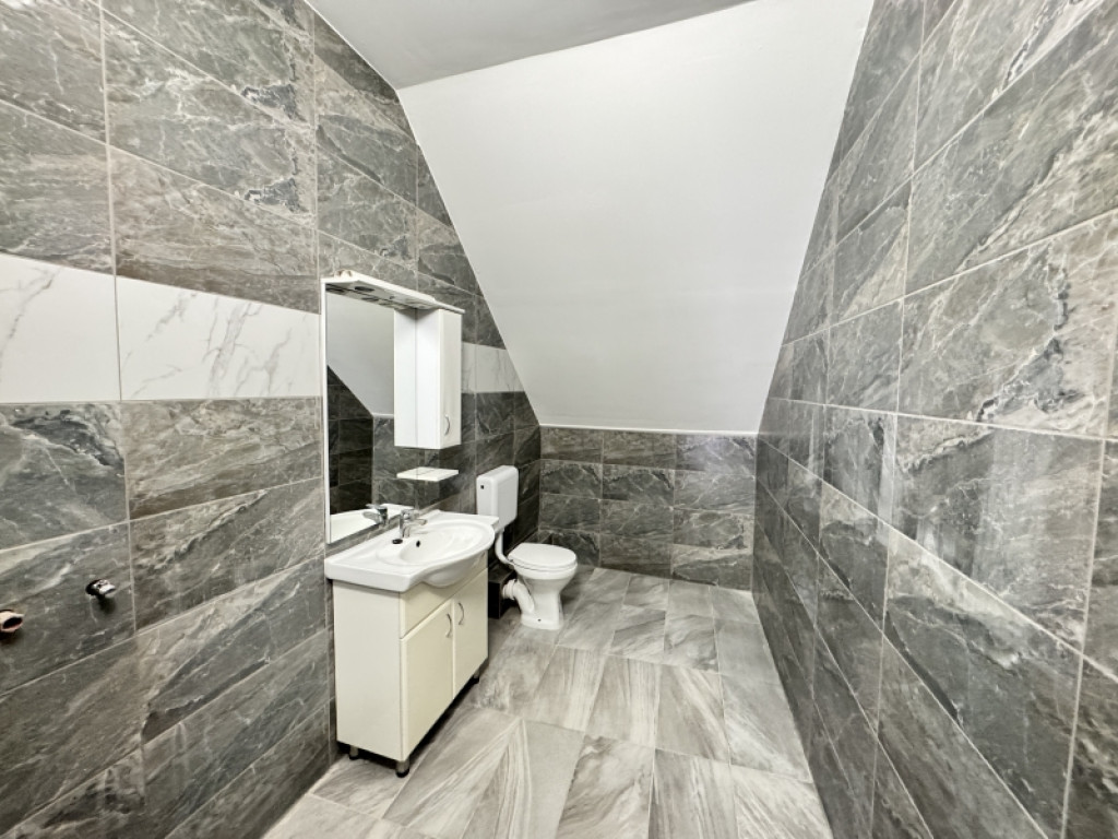 - Az emeleten a fürdőszoba hidegburkolása, wc és mosdó beépítése kész, zuhanykabin hiányzik csak. két hálószoba teljesen kész van, csak egy szoba aljazt kiegyenlítése és burkolása van vissza.