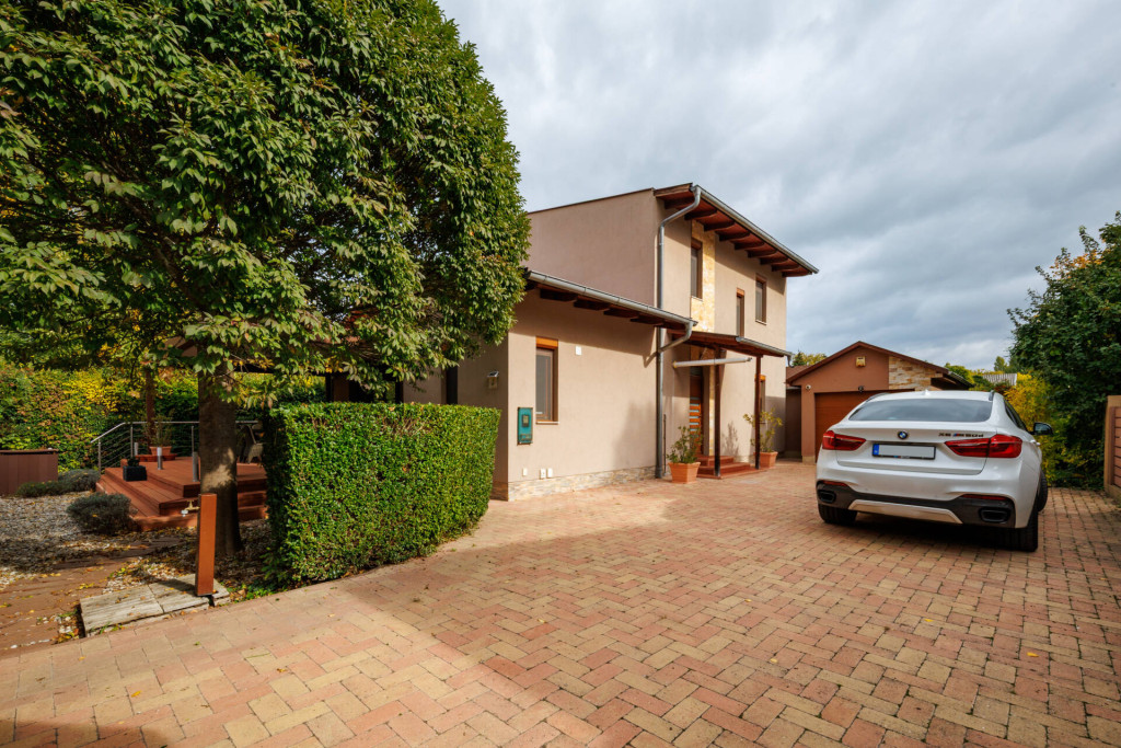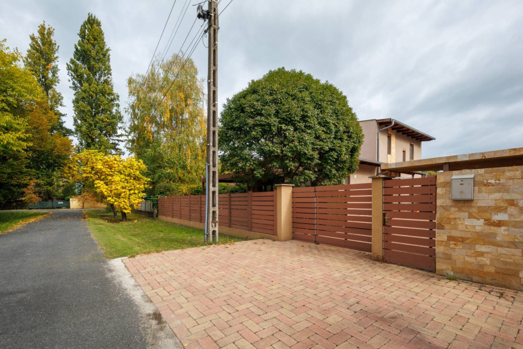 Az 538m2-es, teljesen körbekerített, összközműves telek gondosan karbantartott. A kert parkosított, melyet dísznövények, örökzöldek és gyepfelületek tesznek barátságossá.A tágas előkert és hangulatos hátsó kert tökéletes egyensúlyt teremtenek a reprezentatív megjelenés és a valódi otthonosság között.
