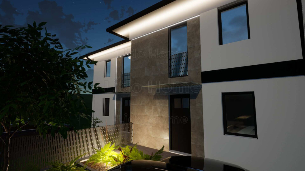 A ház egy 456 m2-es építési telken megvalósuló ikerház egyik lakóegysége, használati megosztással leválasztásra kerülő 228 m2-es telekrésszel. Az egyes ingatlanrészek egymás zavarása nélküli önálló megközelítéssel bírnak. Az építkezés várható befejezése 2026. IV. név.
