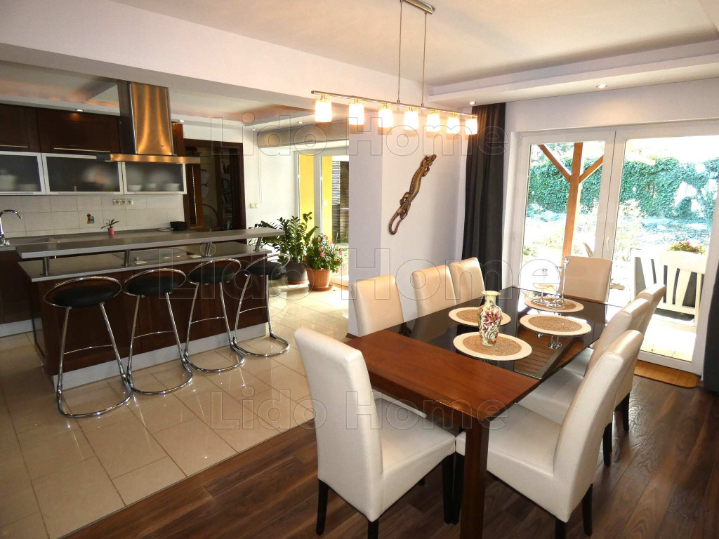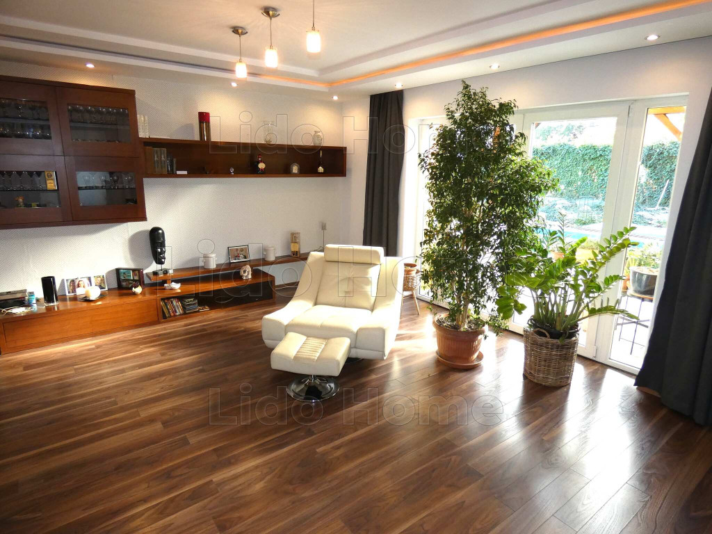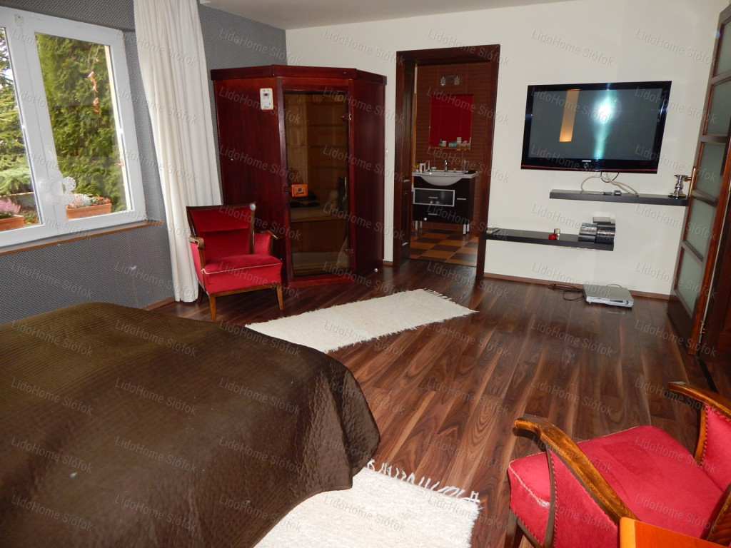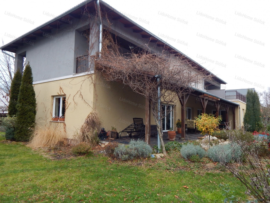 A LIDO HOME SIÓFOKI irodája eladásra kínálja ezt a luxus kivitelű, újszerű MEDENCÉS CSALÁDI HÁZAT.Siófok legszebb kertvárosi részén, 500 m-re a központhoz és a Balaton ezüstparti szabadstrandjához eladó egy minden igényt kielégítő, exkluzív megjelenésű és kivitelezésű 7 szobás luxus lakóház, 7x4 m-es medencével, nagyméretű teraszokkal. Bútorzata és burkolatai az egyéb kiegészítőkkel együtt különleges harmóniát biztosítanak a belső tereknek, ezzel is fokozván a luxus érzését.