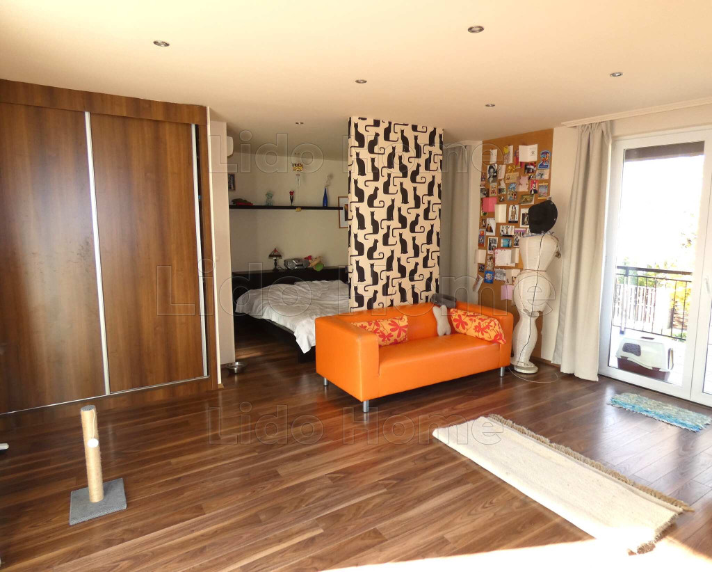 -emeleti részén egy közös nappali lakótérbe csatlakozik két önálló lakrész. Mindkét lakrészben egy-egy nagyméretű háló és különálló kádas fürdő található, déli és északi oldalra néző nagy teraszokkal,