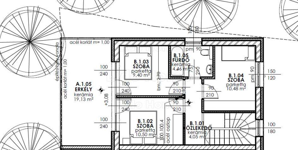 -Az emeleten 3 hálószoba és egy fürdőszoba kapott helyet, valamint egy fedett terasz kerül megépítésre!
