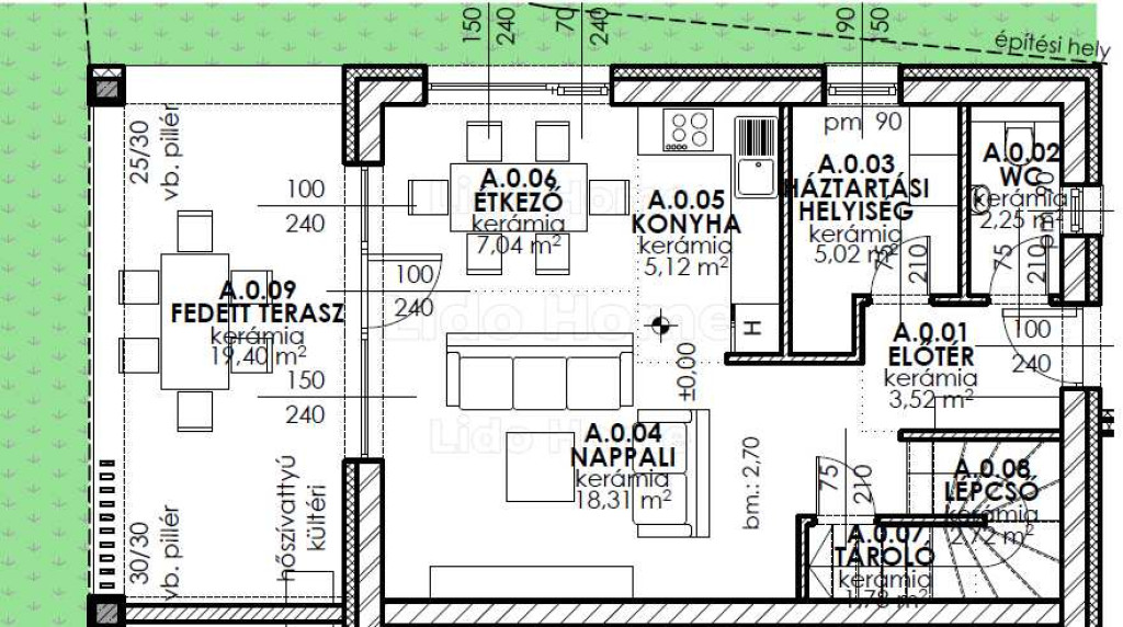 -A fűtés hőszivattyúról működő padlófűtéssel kerül megépítésre