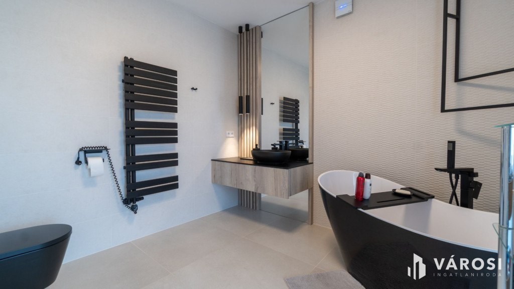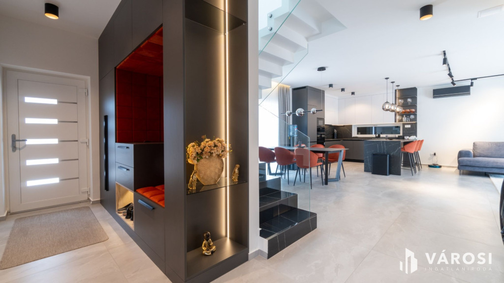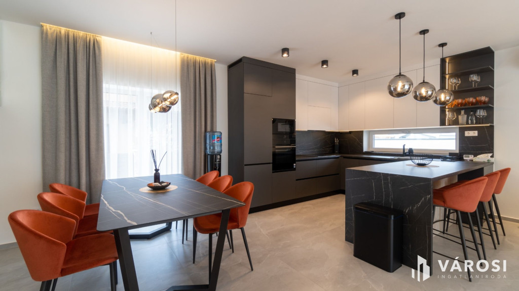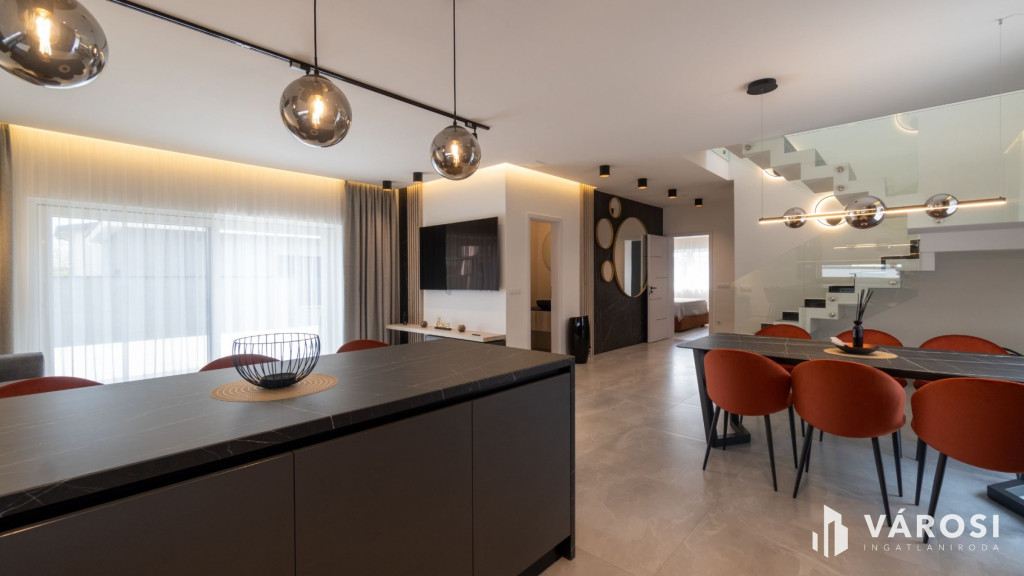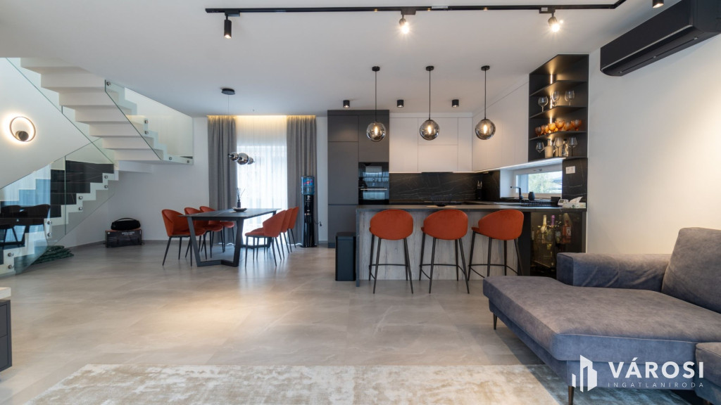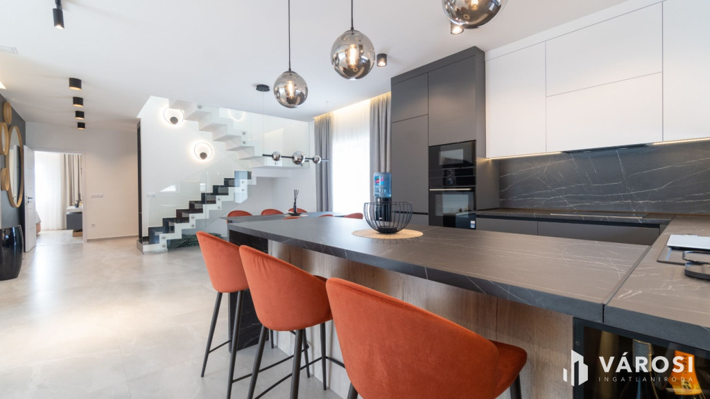 A 2025-ben átadott, kiváló minőségben kivitelezett, összesen 176 m²-es ház tágas tereivel és átgondolt alaprajzával tűnik ki. Az ingatlant igényesen válogatott, teljes bútorzattal és gépesítéssel kínáljuk eladásra – ide valóban csak a bőröndjeit kell hoznia!