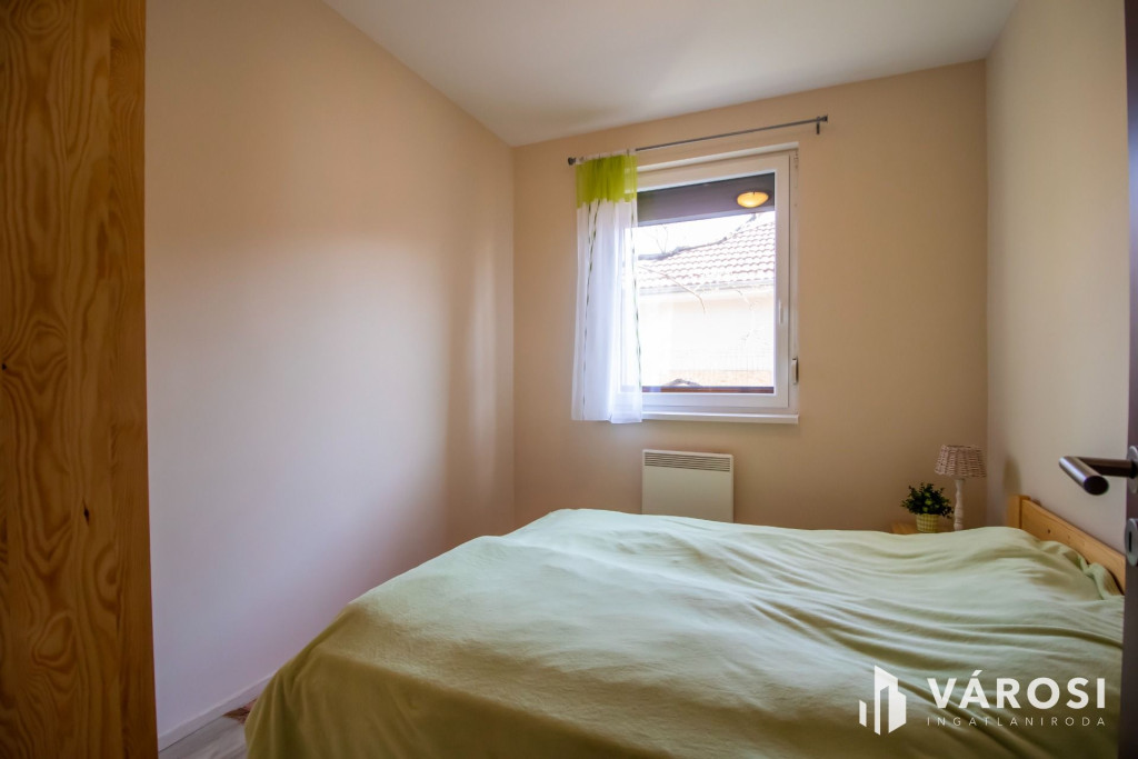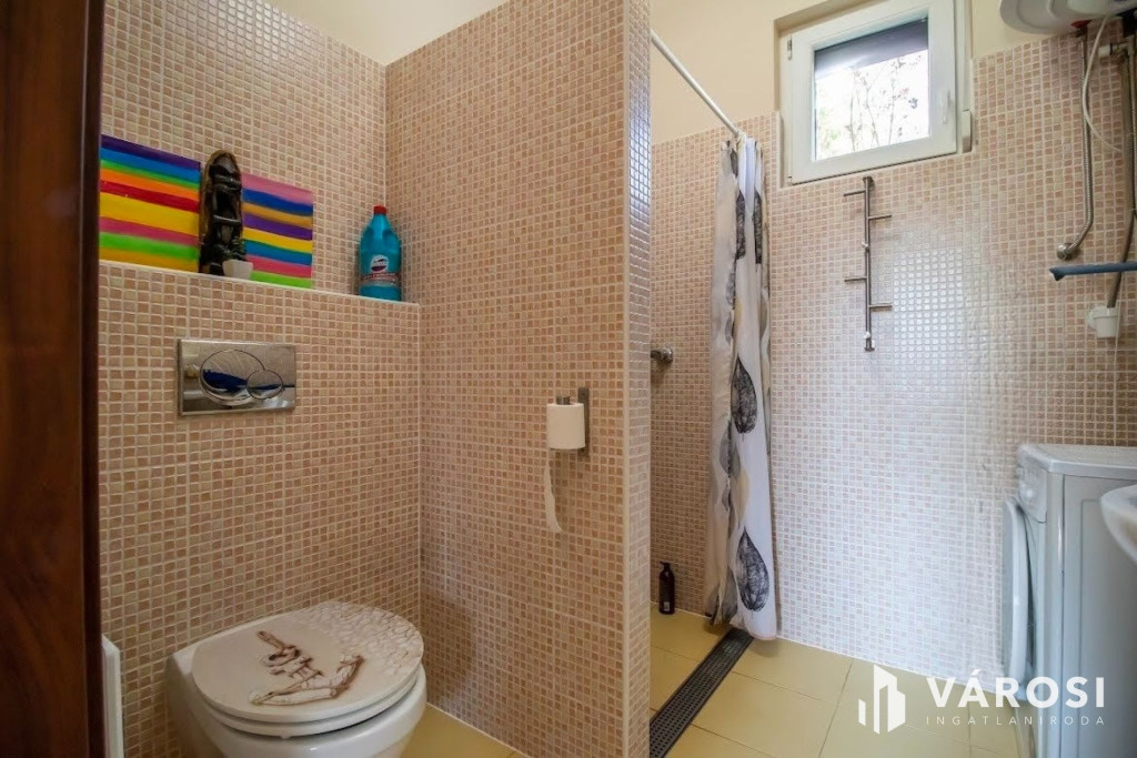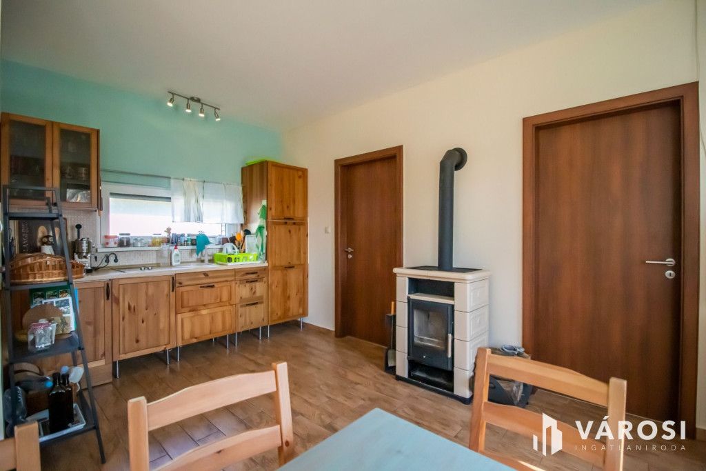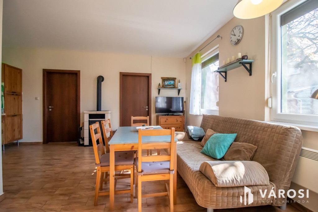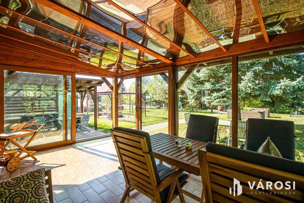 Az 577 négyzetméteres telken épült, 62 négyzetméteres, szigetelt, tégla falazatú házban amerikai konyhás nappali étkezővel, 2 szoba és fürdőszoba található. A ház előtti terasz be lett építve, 3 rétegű üvegezéssel ellátott oldalfalakkal és hatalmas tolóajtóval. Ezeket kinyitva, közvetlen kapcsolat nyílik a csodás kerthez. Akár mind a 4 évszakban használható! Az életteret növeli a ház mellé épített szabadtéri konyha is. A ház igény szerint a teljes berendezéssel együtt eladó.