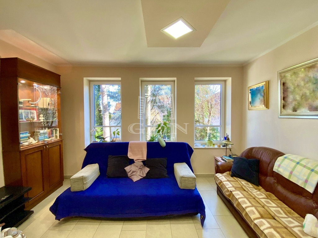 A szuterén szinten 6 helyiséget találunk, melyek jelenleg kondi szoba, műhely, kazánház, mosókonyha, 2 tároló és egy mosdó, szinte mindegyik helyiségen ablakok találhatóak.