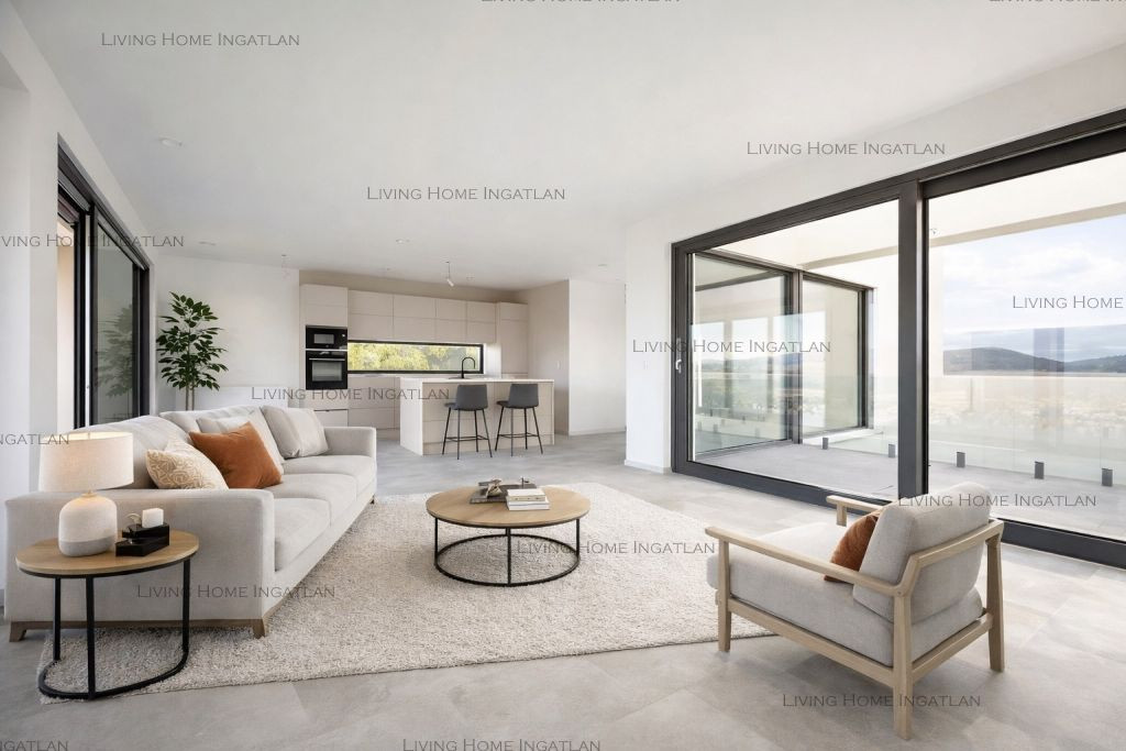 A 245 nm-es, 5 szobás otthon különlegessége a padlótól a mennyezetig érő üvegfelületek és a panorámás teraszok. A Vaillant hőszivattyús rendszer, a mennyezeti hűtés-fűtés, a hővisszanyerős szellőztetés és a prémium nyílászárók zsaluziával a legmagasabb komfortot biztosítják. Itt minden részlet a minőségről szól.
