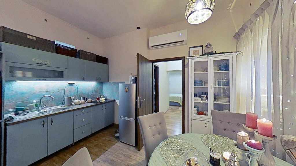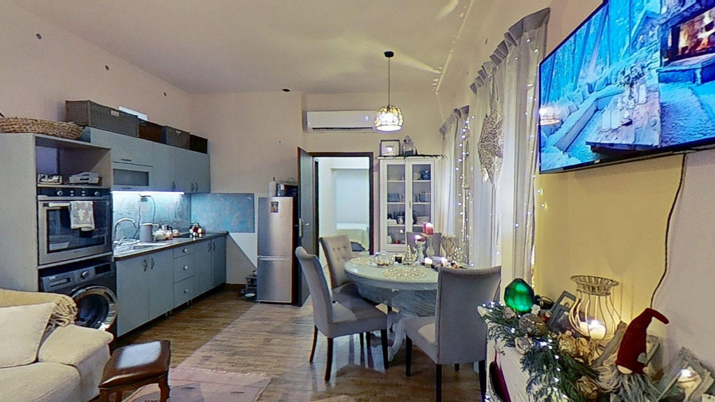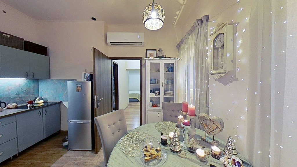 Az utcafront felé néző két szoba DNY-i tájolású, az udvar felé tekintő konyha és hálószoba DK-i tájolású. Az ingatlan válogatott berendezési tárgyai, restaurált antik bútorai harmonikus egészet alkotnak a ház stílusával, és igény esetén a vételár részét képezik. Amennyiben kiürítve szeretné megvásárolni az ingatlant, akkor az értékük (3 mFt ) a vételárból levonásra kerül. Az ingatlant tágas belső terei, modern kialakítása, világos szobái, és a jó elosztása teszi igazán vonzóvá.