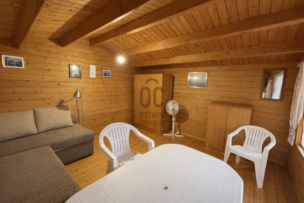A telken található egy közel 12 m²-es faház is, amely jelenleg vendégek fogadására, illetve nyári lakrésznek használt.