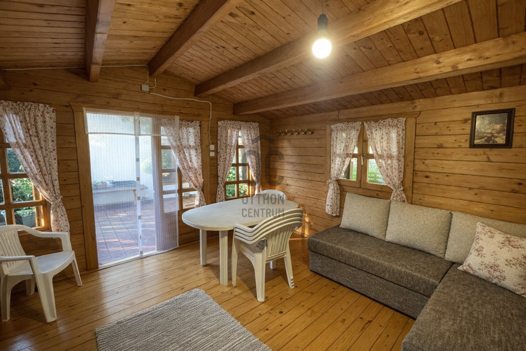 A telken található egy közel 12 m²-es faház is, amely jelenleg vendégek fogadására, illetve nyári lakrésznek használt.