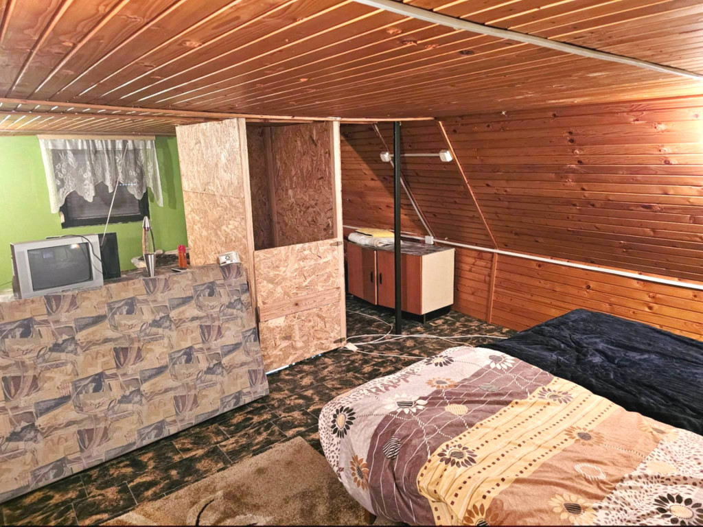 • Tetőtér: beépített, ~30 m², belmagasság: 175 cm