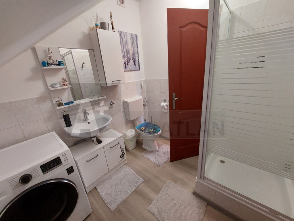 - kétszintes, földszintjén amerikai konyhás nappali, fürdő, wc, előszoba, emeletén három hálószoba, fürdőszoba, közlekedő