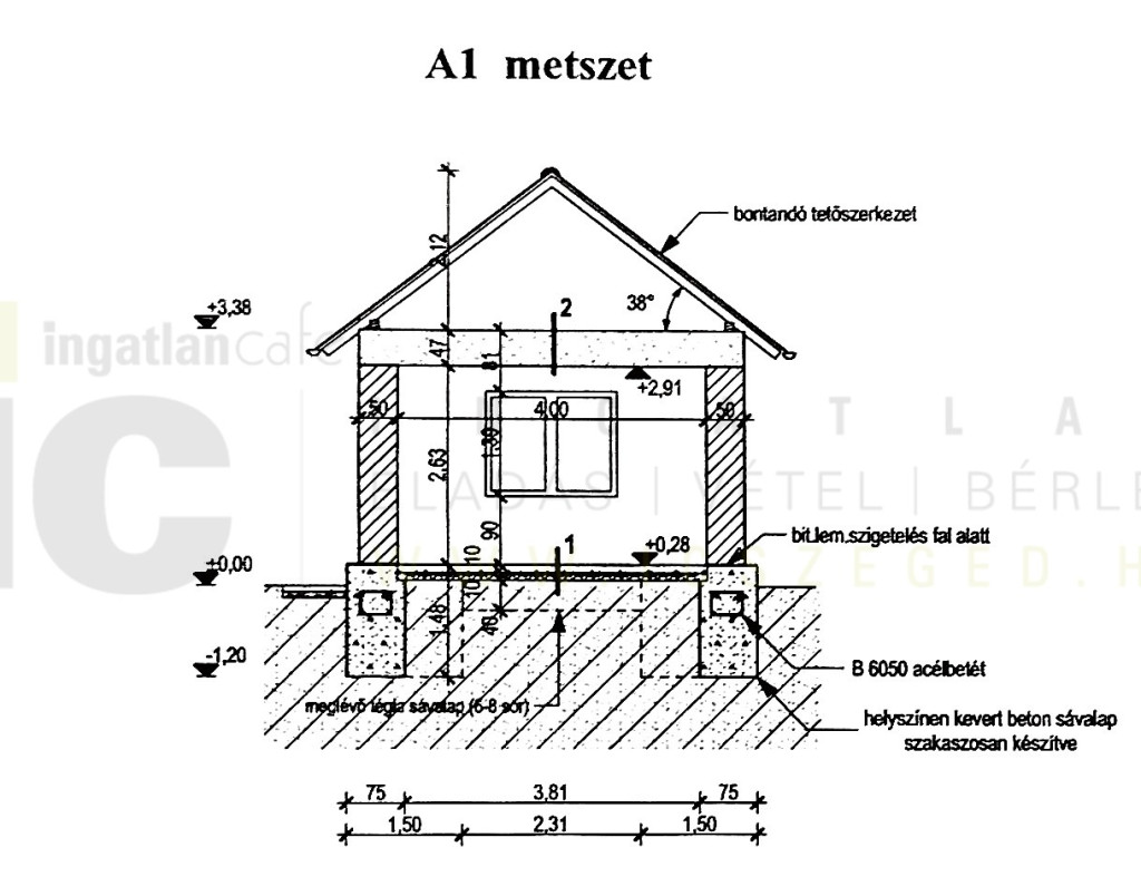 - vegyes építésű egyszintes ház, nettó össz: 74 m2 alapterületű