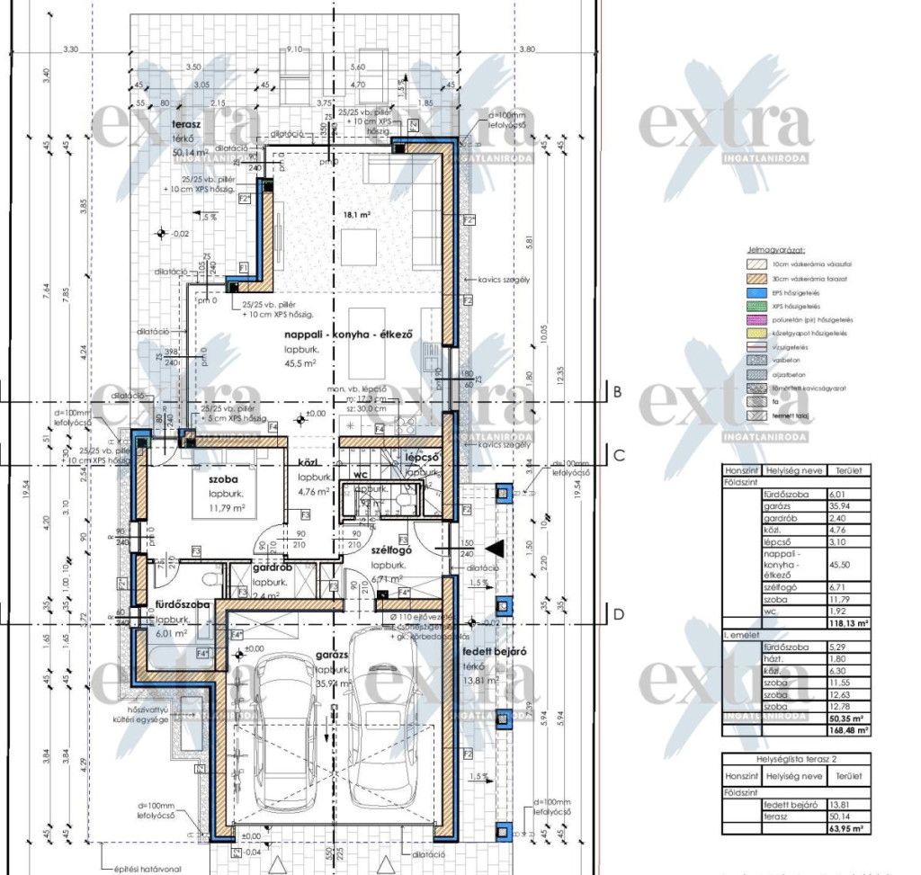 - tágas szélfogó/előszoba (6,71m2, 6,30m2)