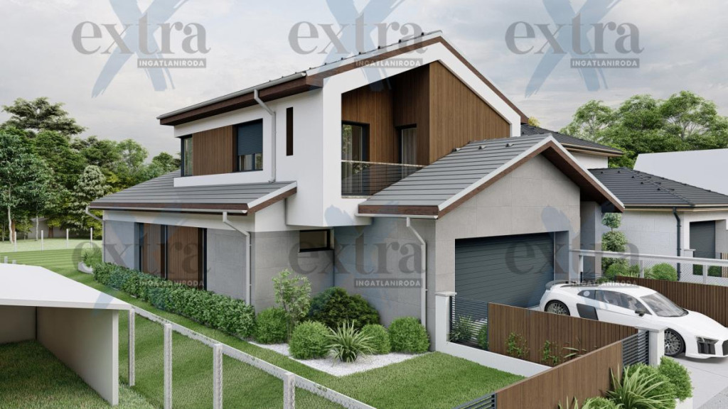 Az ingatlan egy kétszintes, 221,94 m²-es, nappali + 4 szobás otthon, amely minden igényt kielégít. Mindez egy 753 m²-es telken, dupla garázzsal, családias kertvárosi környezetben helyezkedik el.