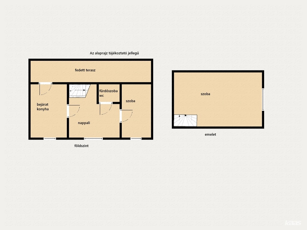- földszint:2 szoba, közlekedő, konyha, kádas fürdőszoba, wc egyben